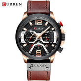 Introducing the Military Leather Chronograph Wristwatch, the perfect accessory for the modern man. This stylish watch features a chronograph design with three small dials for tracking seconds, minutes, and 24 hours. It's the perfect choice for men who want a casual yet sophisticated look. The Military Leather Chronograph Wristwatch is made of high-quality materials and comes in a variety of colors to suit your personal style. Whether you're at the gym or out on the town, this watch is sure to impress. Order yours today and experience the difference!